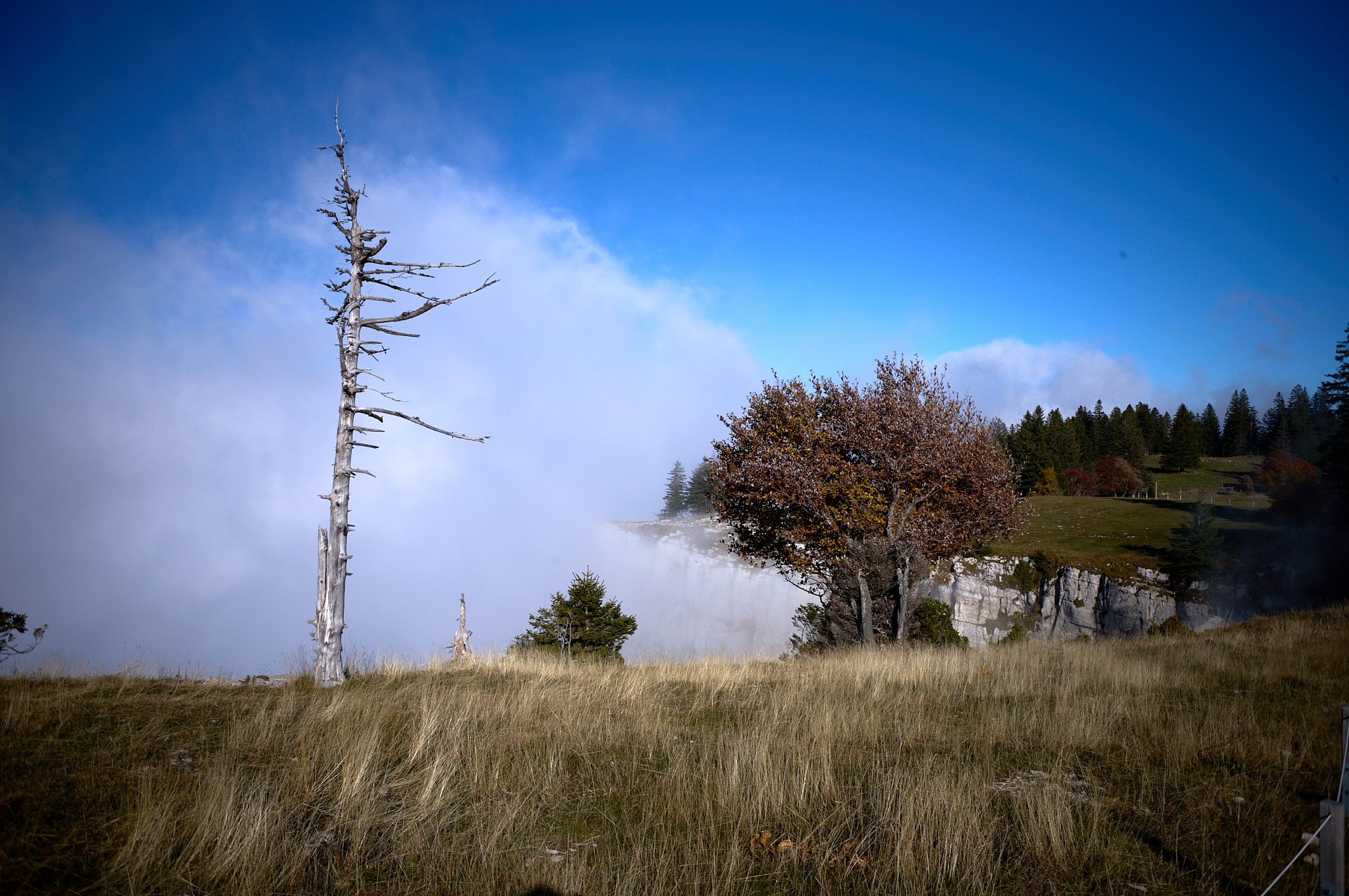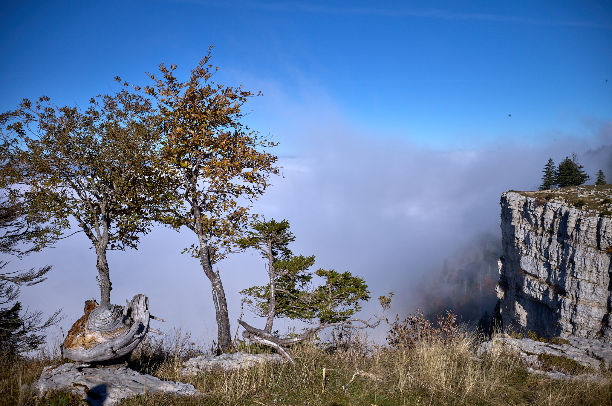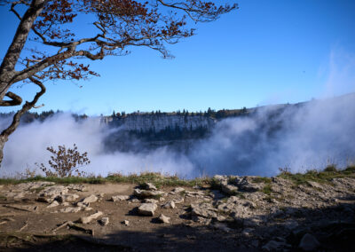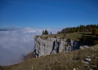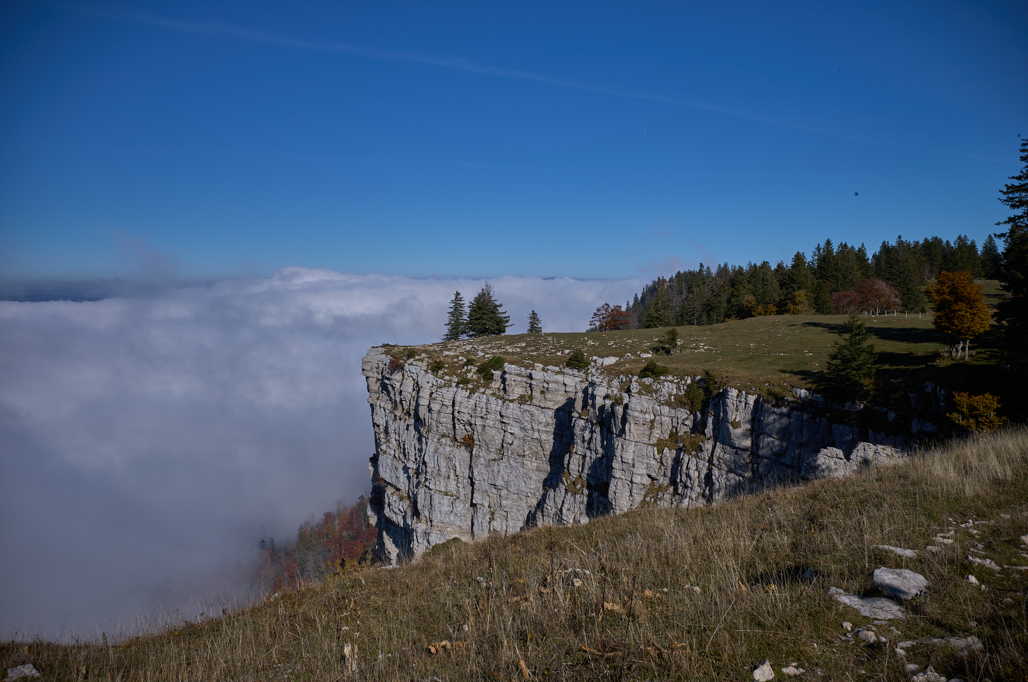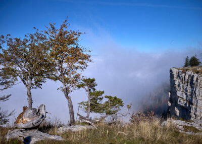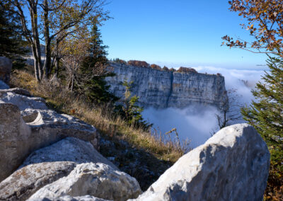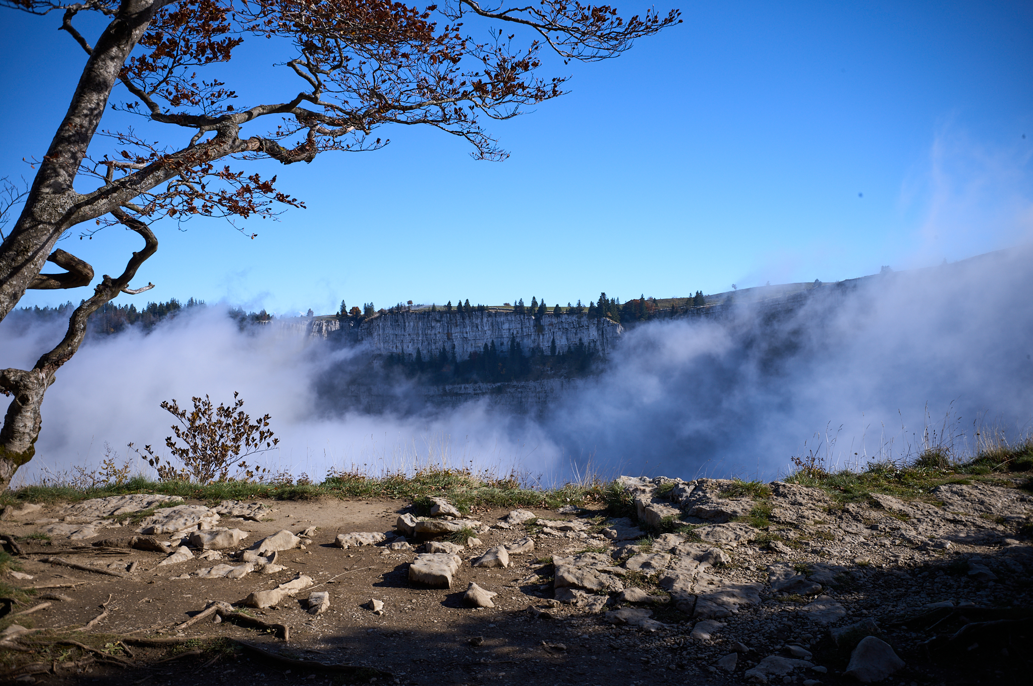 Dans les Creux du Van, ce cirque de roche grandiose, la brume caresse les sommets. Le silence est profond, la nature brute. Chaque pas sur le sentier en vaut la peine